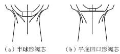 圖4是半球形閥芯與平底凹口形閥芯的氣流流向分布。由圖4可看出,平底凹口形閥芯能減小氣流對閥芯的附著,使氣流交匯點遠離閥芯,有效降低振動。