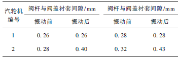 表1為2臺汽輪機GV3出現明顯振動前后的2次檢修數據。
